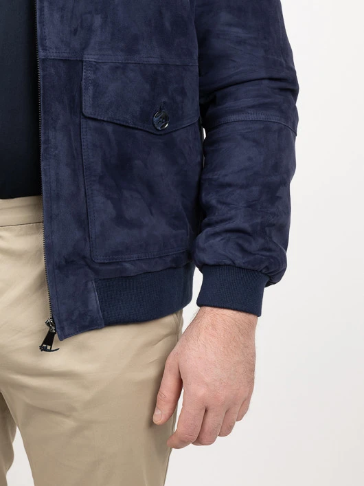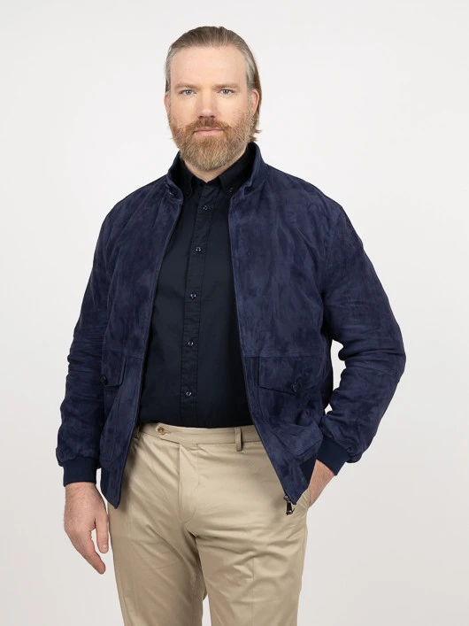Exprimez votre style avec notre blouson indigo, une pièce maîtresse pour tout homme grande taille cherchant à allier élégance et confort. Fait en cuir de chèvre velours, il est doux au toucher et ni trop léger, ni trop épais. C’est un blouson idéal pour la mi-saison !