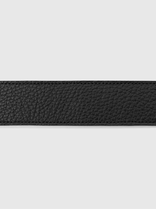 Autre variante de la classique et incontournable ceinture noire : la ceinture en cuir grainé. Elle présente un grain particulier qui offre du relief et un détail à la ceinture. Elle demeure très discrète mais apporte un petit plus non négligeable grâce à grain.