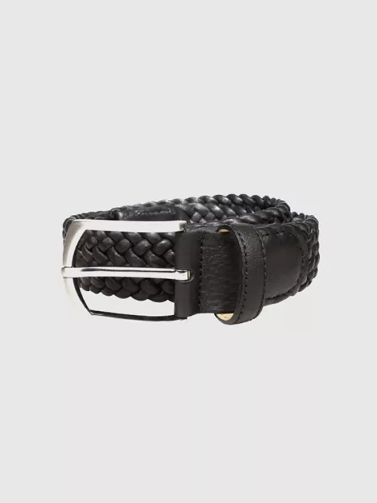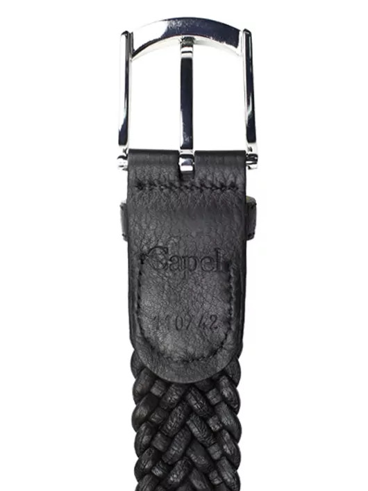 Ceinture grande taille pour homme Capel Paris. Ceinture confectionnée dans un beau cuir noir tressé. Made in France. Disponible du 105 au 145 cm.