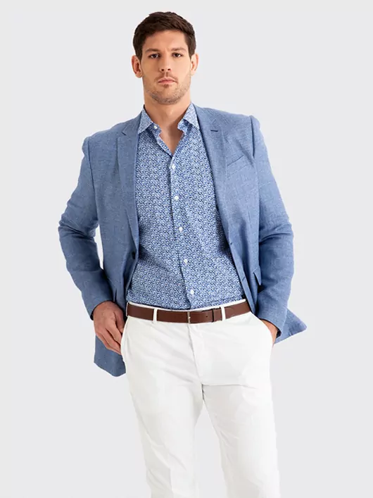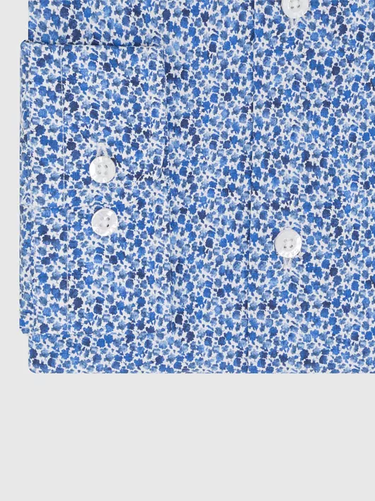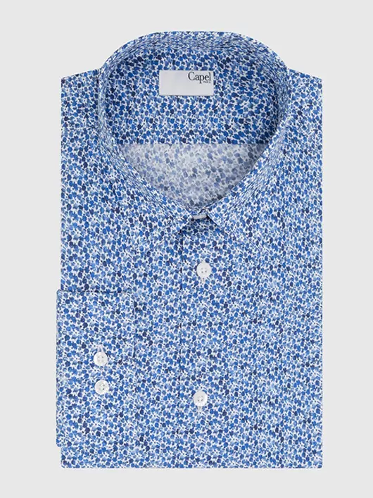 Quoi de mieux durant les beaux jours qu’une chemise à motifs floraux Liberty ? Avec différentes nuances de bleu, c’est un motif simple et idéal pour agrémenter différemment vos tenues. La chemise se porte très bien sous une veste nattée et un pantalon coton blanc comme avec un jean et des baskets pour un look décontracté.