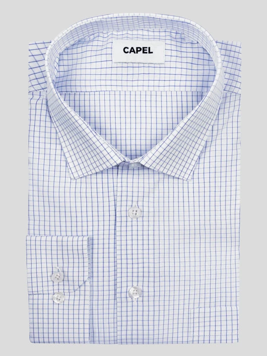 Cette chemise Capel à carreaux a été conçue en popeline 100% coton avec une finition toucher doux. Sa coupe droite offre une aisance et un confort agréable, même lors des chaudes journées d’été. Facile à porter, son motif intemporel vous permettra de l’associer avec un blazer ou un costume accompagné d’une cravate unie bleu marine.