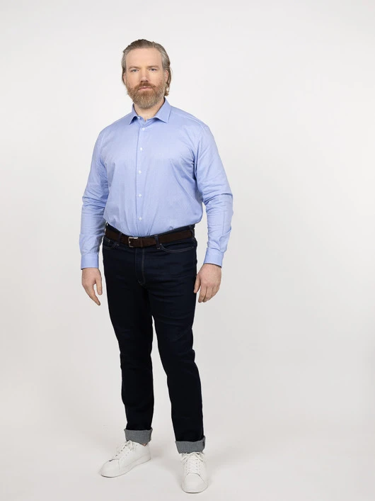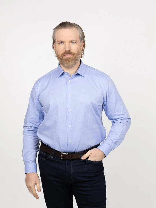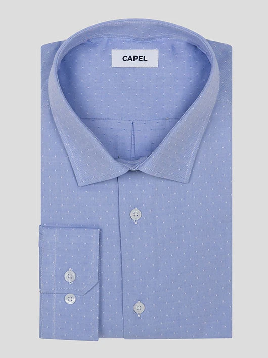 Cette chemise CAPEL a été conçue en popeline 100% coton avec une finition toucher doux. Sa coupe droite offre une aisance et un confort agréable, même lors des chaudes journées d’été. Facile à porter, son motif intemporel vous permettra de l’associer avec un blazer ou un costume accompagné d’une cravate unie bleu marine.
