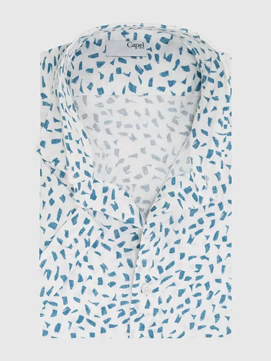 Si vous avez l’âme d’un artiste, cette chemise est absolument faite pour vous. Avec ses motifs de style coups de pinceau, le vêtement peut être porté de façon casual ou plus artsy en soignant les détails de votre tenue. Portez-la de façon plus classique avec un bermuda et des tennis de ville ou rentrée dans un jean délavé et des sneakers fines. Sa composition en lin fait d’elle une chemise légère et très agréable à porter durant les beaux jours. Laissez-vous tenter !