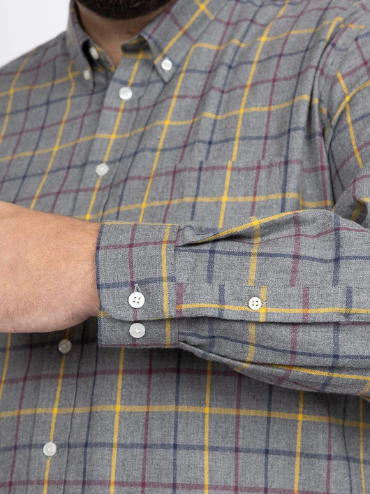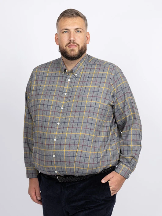 La chemise Ralph à carreaux en gris, jaune et bordeaux est une pièce intemporelle et stylée, parfaite pour un look casual-chic. Son motif à carreaux audacieux combine des teintes de gris comme base, rehaussées de touches de jaune et de bordeaux, créant un contraste harmonieux et moderne.