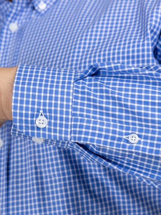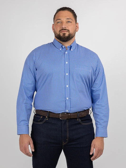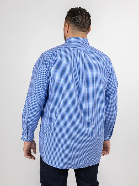 Cette chemise motif à carreaux bleu/blanc en 100% coton offre confort et élégance. Idéal pour un look chic casual.