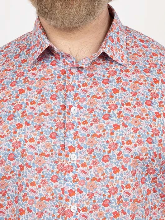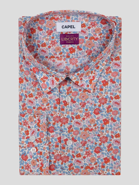 Cette chemise Capel à motifs fleuris qui fait sensation apporte une touche de fraîcheur et de gaieté à votre tenue. Confectionnée dans un tissu LIBERTY 100% coton exceptionnellement lisse et soyeux, elle est idéale pour les occasions décontractées mettant en valeur votre silhouette grâce à sa coupe droite tout en vous assurant un confort optimal. Cette chemise apportera une touche colorée et florale à votre tenue !