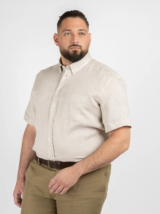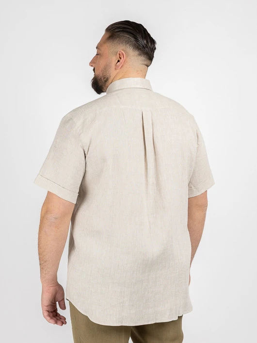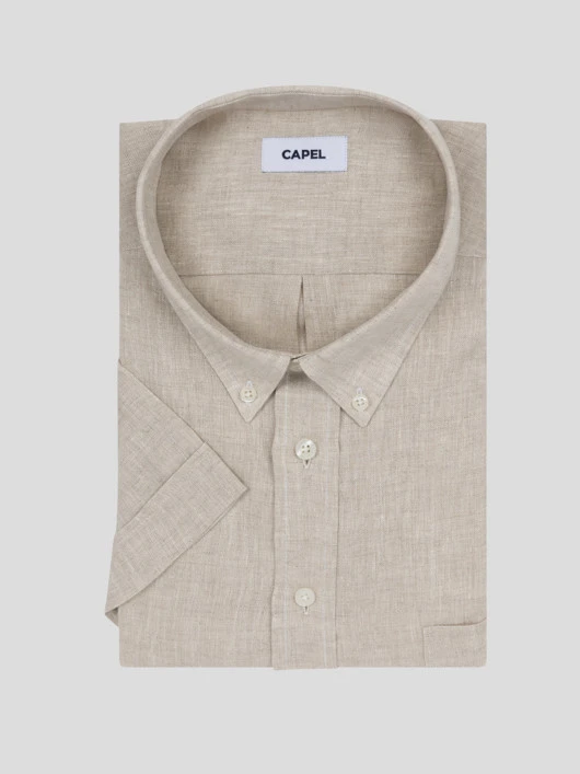 Cette chemise beige en lin apporte confort et respirabilité grâce à son tissu léger idéale pour un look à la fois décontracté et raffiné.