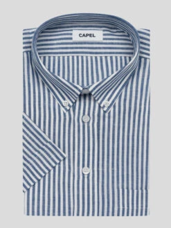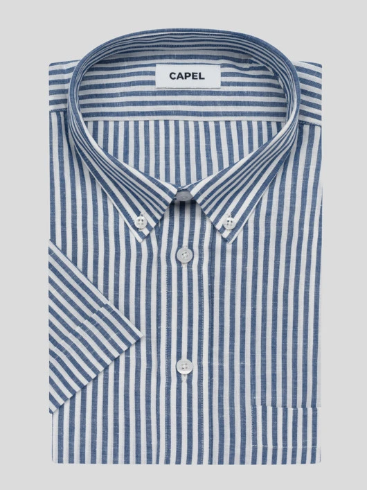 Cette chemisette à rayures rassemble les caractéristiques de deux matières idéales pour l’été : le coton, très doux et confortable au porter, et le lin, matière respirante et légère. Idéal n’est-ce pas ?