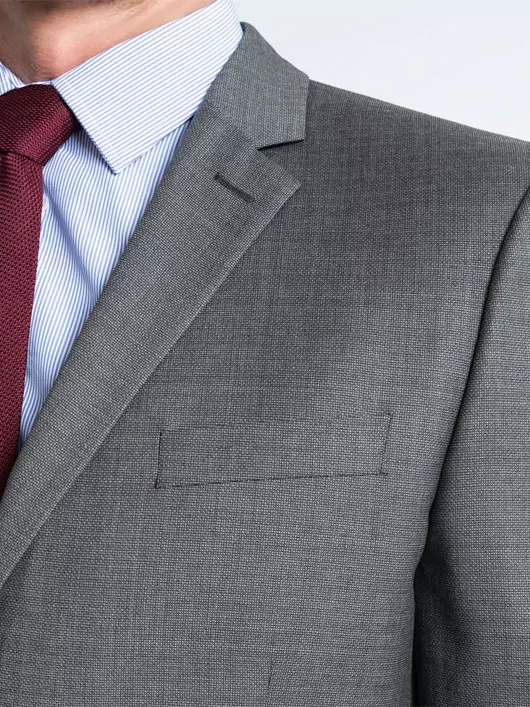Faux uni composé de deux fils contrastés, anthracite et noir, ces derniers permettent un harmonieux rendu de nuances de gris. Costume élégant et moderne, son tissage natté, presque géométrique et au grain affirmé offre de la texture et du caractère. La laine New Zealander dans laquelle il est confectionné, a été sélectionnée avec soin par Loro Piana, drapier italien de renom. Elle est réputée pour sa souplesse, sa brillance et sa résistance. Sa texture et sa doublure bordeaux lui offrent un look moderne.