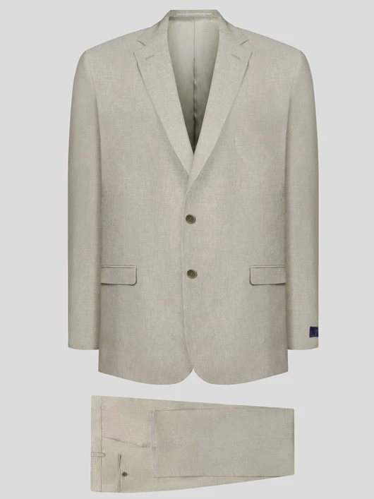 Costume séparable beige lin 2 pièces pour homme grande taille.