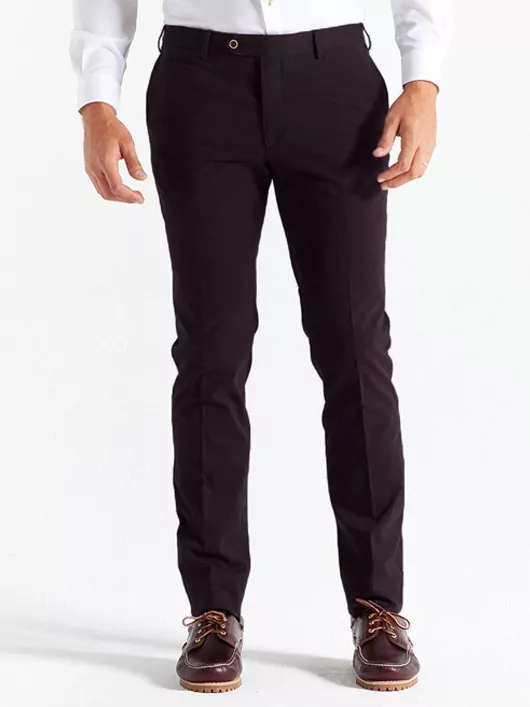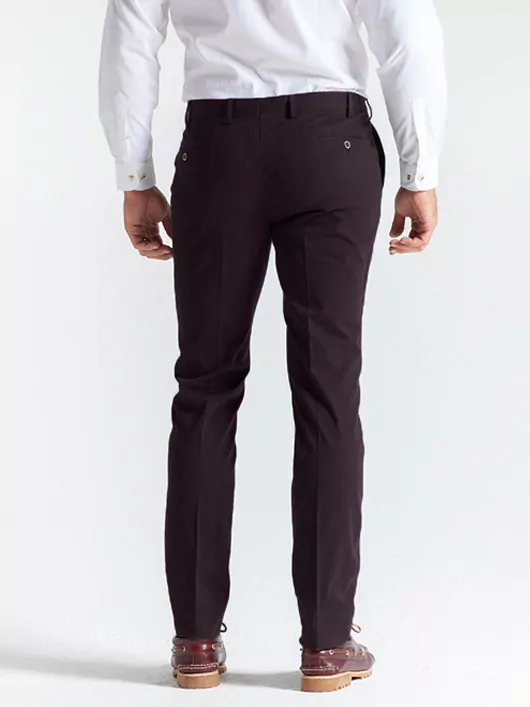 Confort et style font ce pantalon coton. Fait dans un tissu bi-extensible, il vous garantit aisance et confort absolu grâce à son élasticité en chaine et en trame (horizontale et verticale). Sa finition peau de pêche le rend doux et très agréable au toucher. Sa coupe est droite et moderne. Sa belle teinte prune ira parfaitement avec notre chemise et notre teddy en drap de laine.