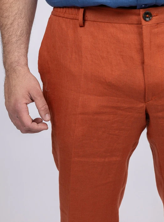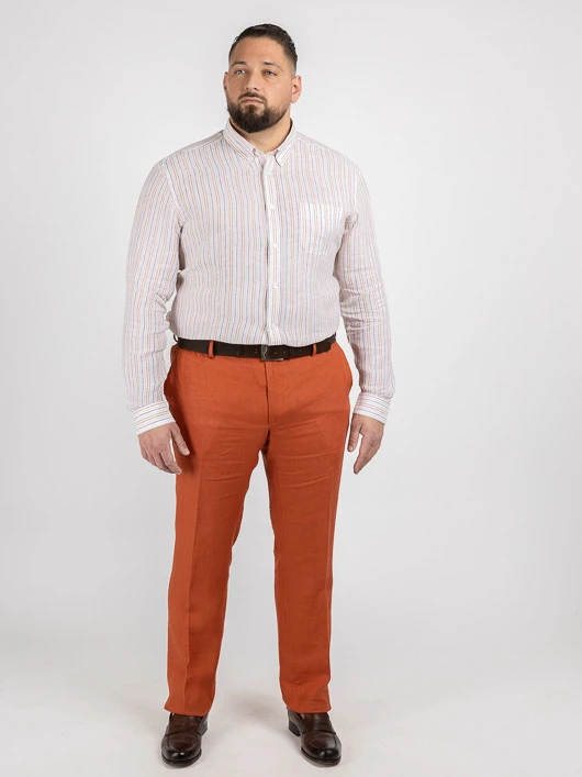 Un pantalon décontracté CAPEL pour les hommes grande taille arborant une coupe droite ajustée. LA NOUVEAUTÉ de cette saison, ce pantalon confectionné en 100% lin est un essentiel à avoir dans son dressing.