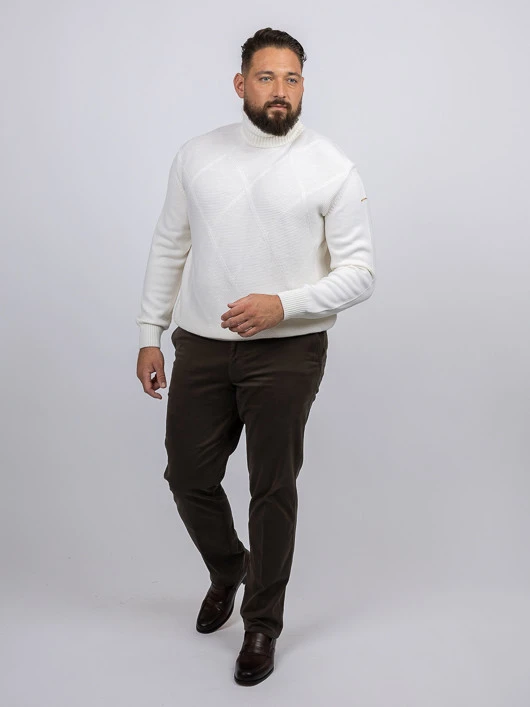 Élégant et confortable, ce pantalon en coton mélangé à de fibres extensible sera un atout dans votre garde-robe. Très facile à associer, il se marie parfaitement avec du beige, du noir et du orange, il apportera une touche d’originalité à vos tenues.