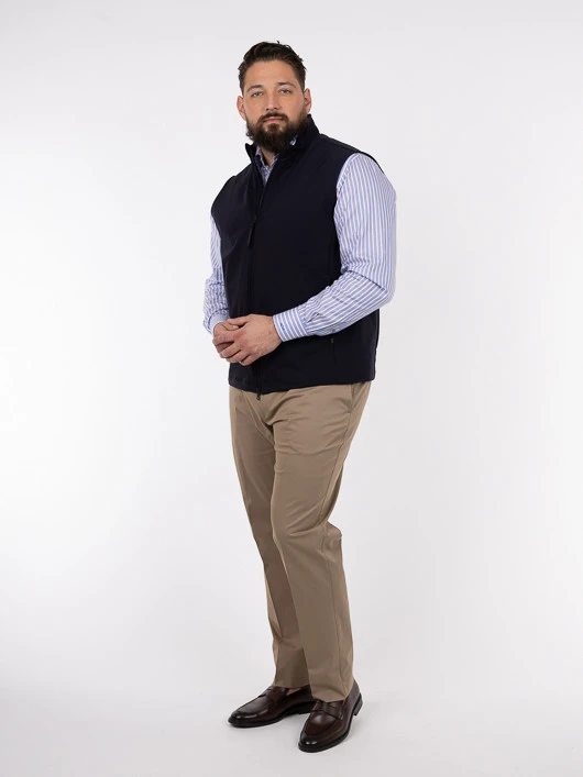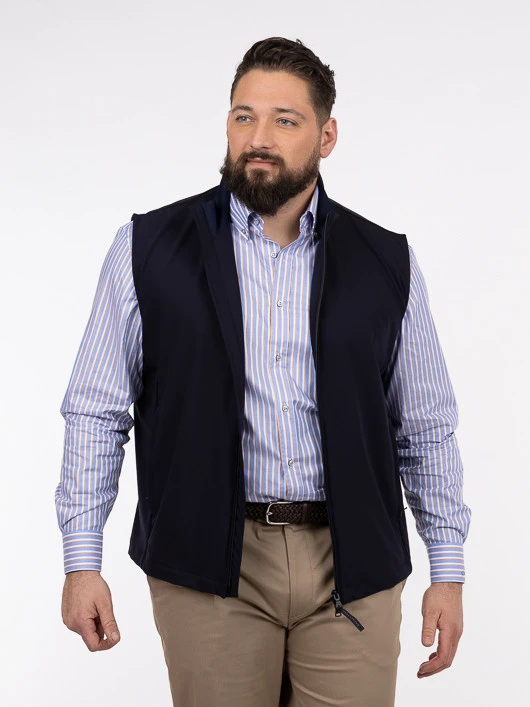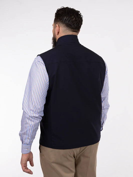 Élégant et fonctionnel, ce blouson sans manches Paul & Shark est une pièce incontournable pour un look tendance. La teinte bleu marine profond confère une polyvalence remarquable, permettant de l’associer à un éventail de tenues, des chemises habillées, comme celle portée par le modèle, aux tenues plus casual.