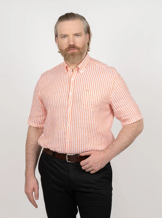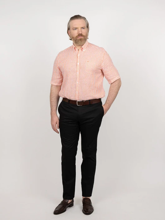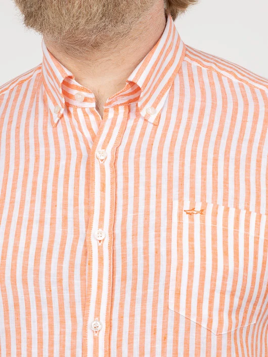 Embrassez l’élégance estivale avec la chemise à manches courtes Paul & Shark, spécialement conçue pour les hommes grande taille. Confectionnée en 100% lin, cette chemise légère arbore des rayures blanches et oranges, offrant un mélange parfait de style décontracté et d’élégance.