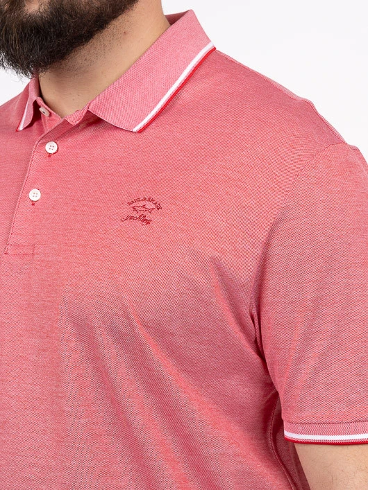 Ce polo Paul & Shark pour homme allie style classique et confort contemporain. Le tissu en coton présente un attrayant effet chiné dans des nuances de rose, parfait pour ajouter une touche de couleur à votre garde-robe estivale.