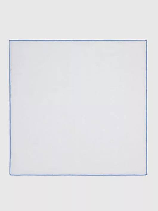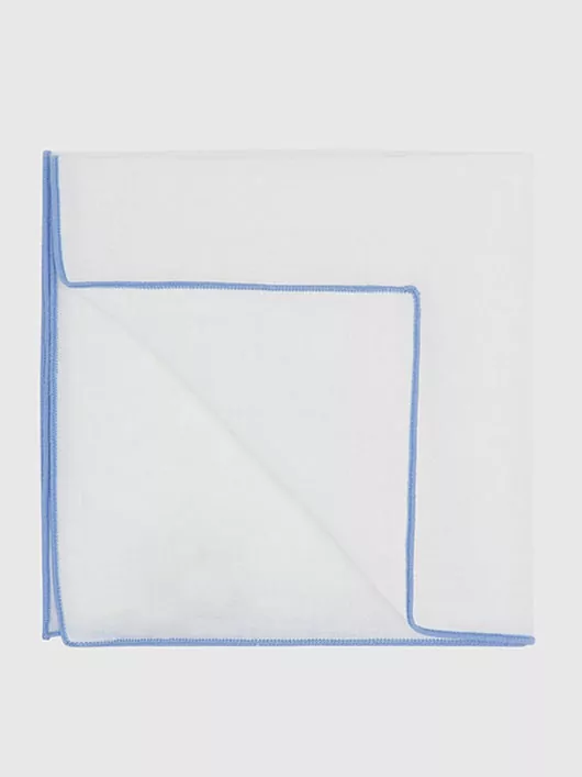 Cette pochette bleue et blanche est 100% Lin. Les détails bleus donneront une touche de couleur à votre tenue.