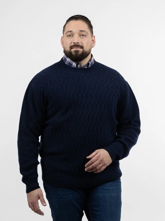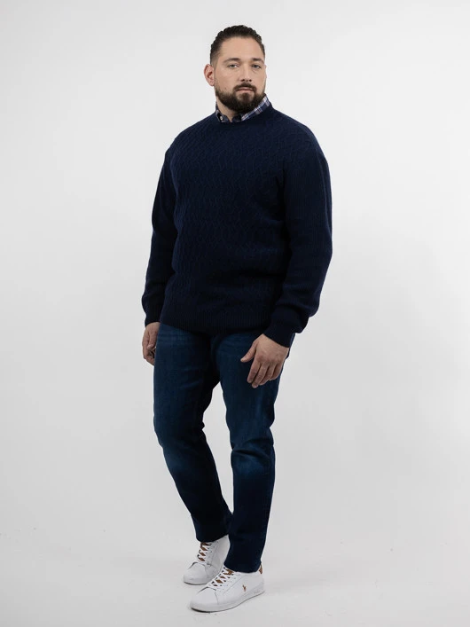Ce pull col rond grande taille, signé Capel, revisite le style torsadé avec élégance.