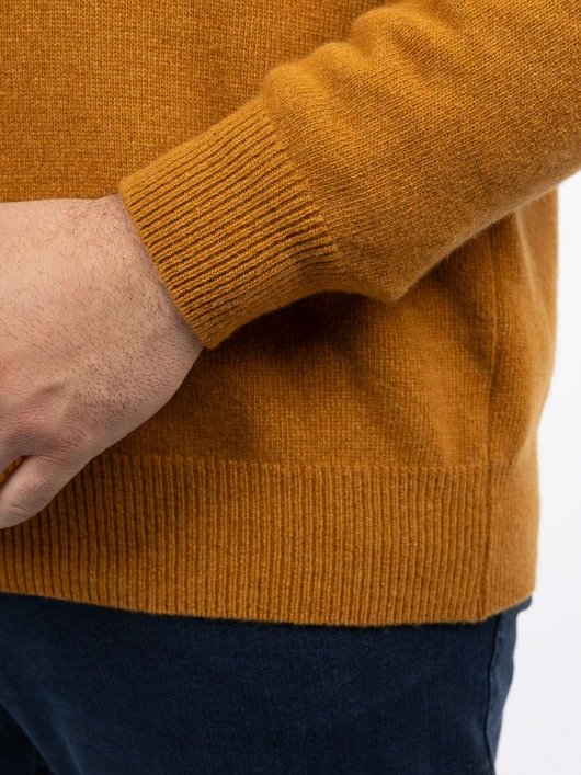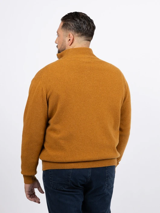 Pull col camionneur ocre en laine mélangée, conçu pour les grandes tailles. Chaleur, confort et style moderne avec un col zippé pratique.