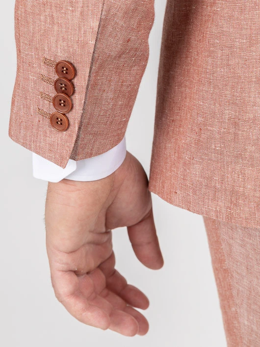 Veste en 100% lin terracotta, légère et respirante, idéale pour l’été, elle assure confort et élégance, et offre une coupe moderne et une couleur chaude qui apporte une touche chic à vos tenues estivales.